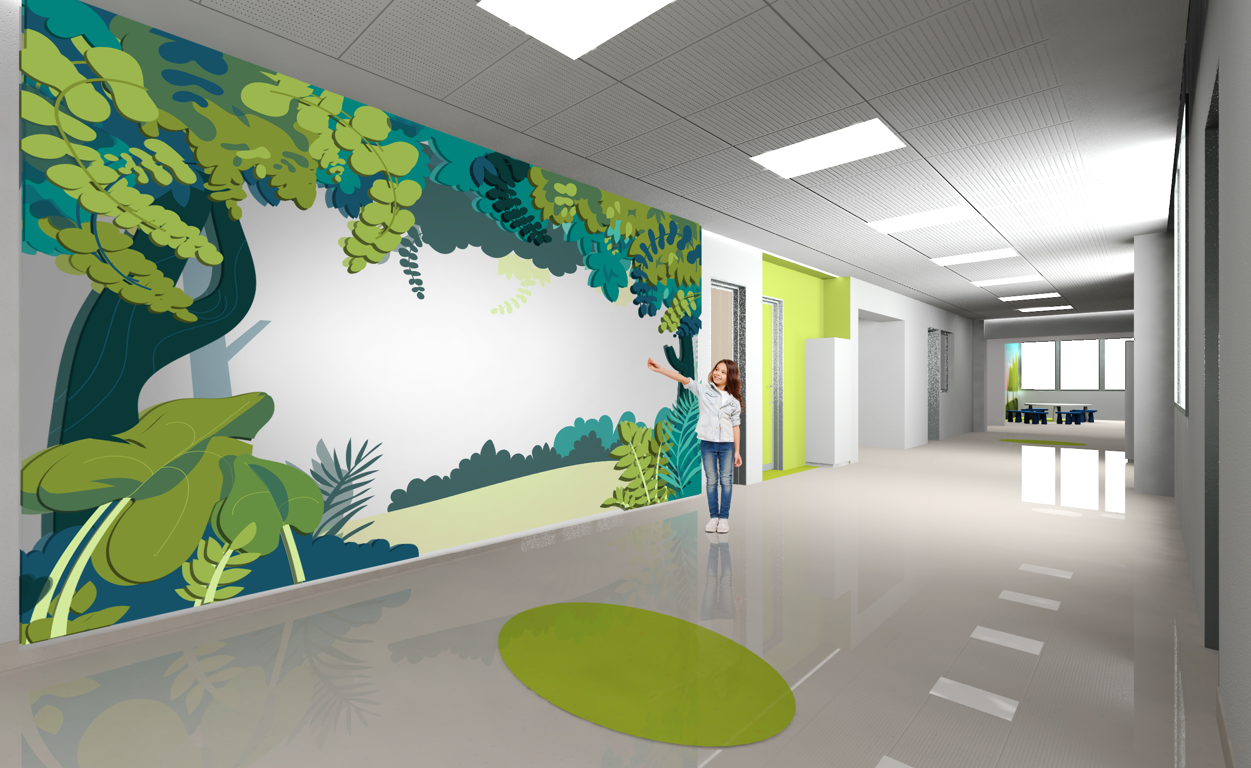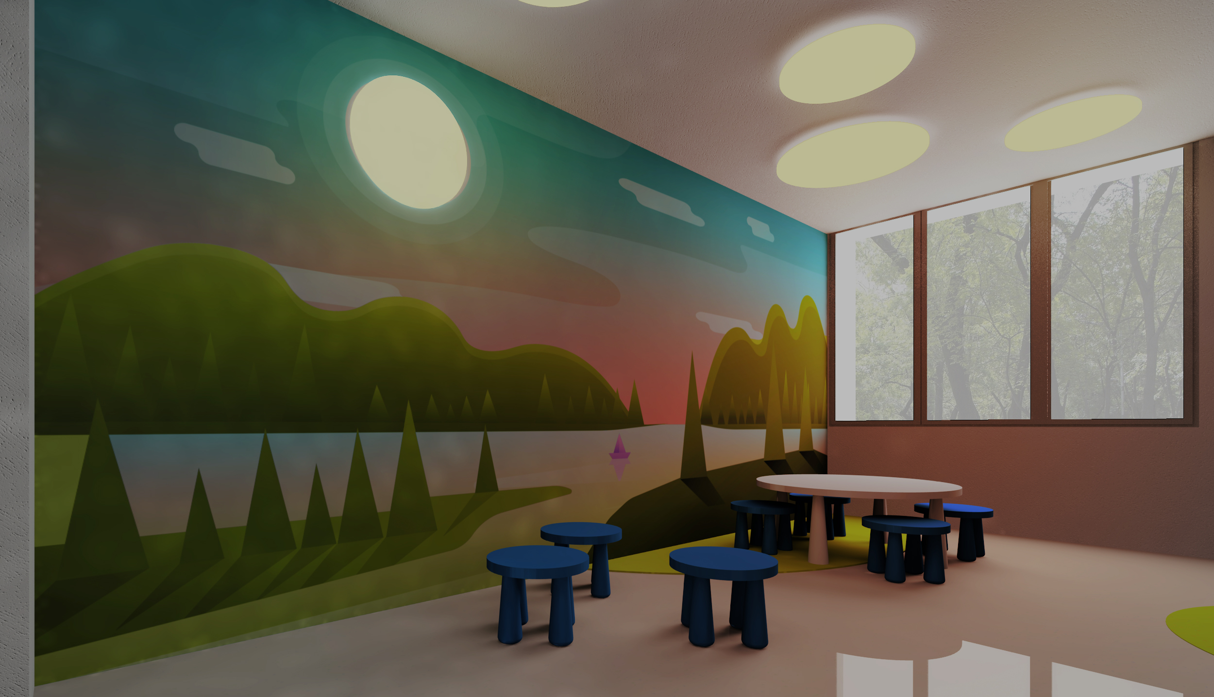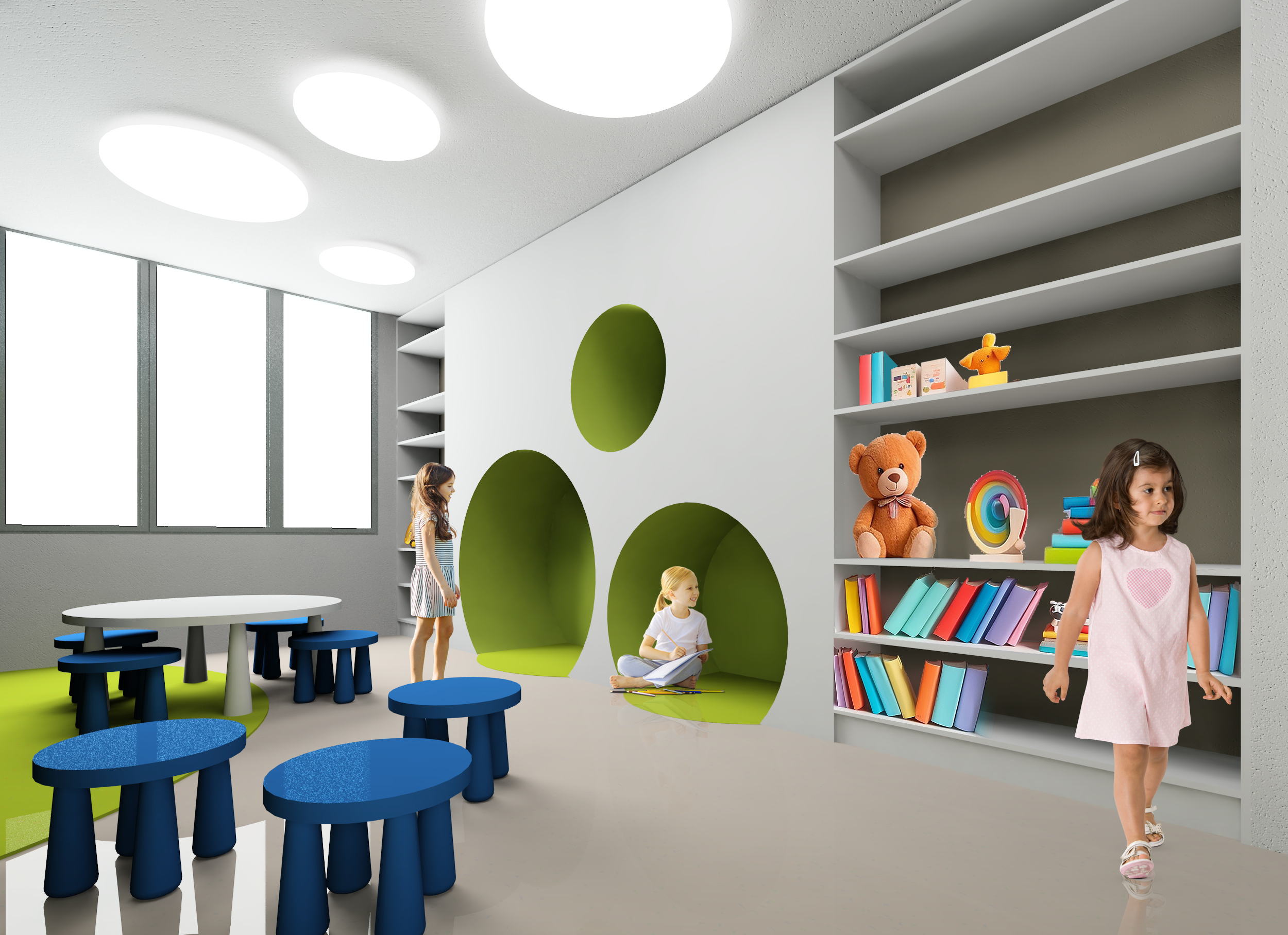 1. L’Umanizzazione degli spazi: Si interviene sulla struttura fisica per superare l’attuale stato di ambienti datati e poco stimolanti. Attraverso trasformazioni cromatiche, nuovi arredi e "animali-guida" magnetici, le camere e i corridoi perdono la loro freddezza istituzionale. Cuore di questa fase è la Sala Multifunzionale, uno spazio fluido che grazie a pareti mobili può trasformarsi da area giochi a sala meeting o ambulatorio per colloqui.