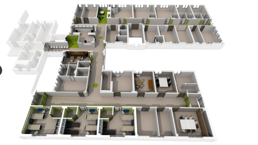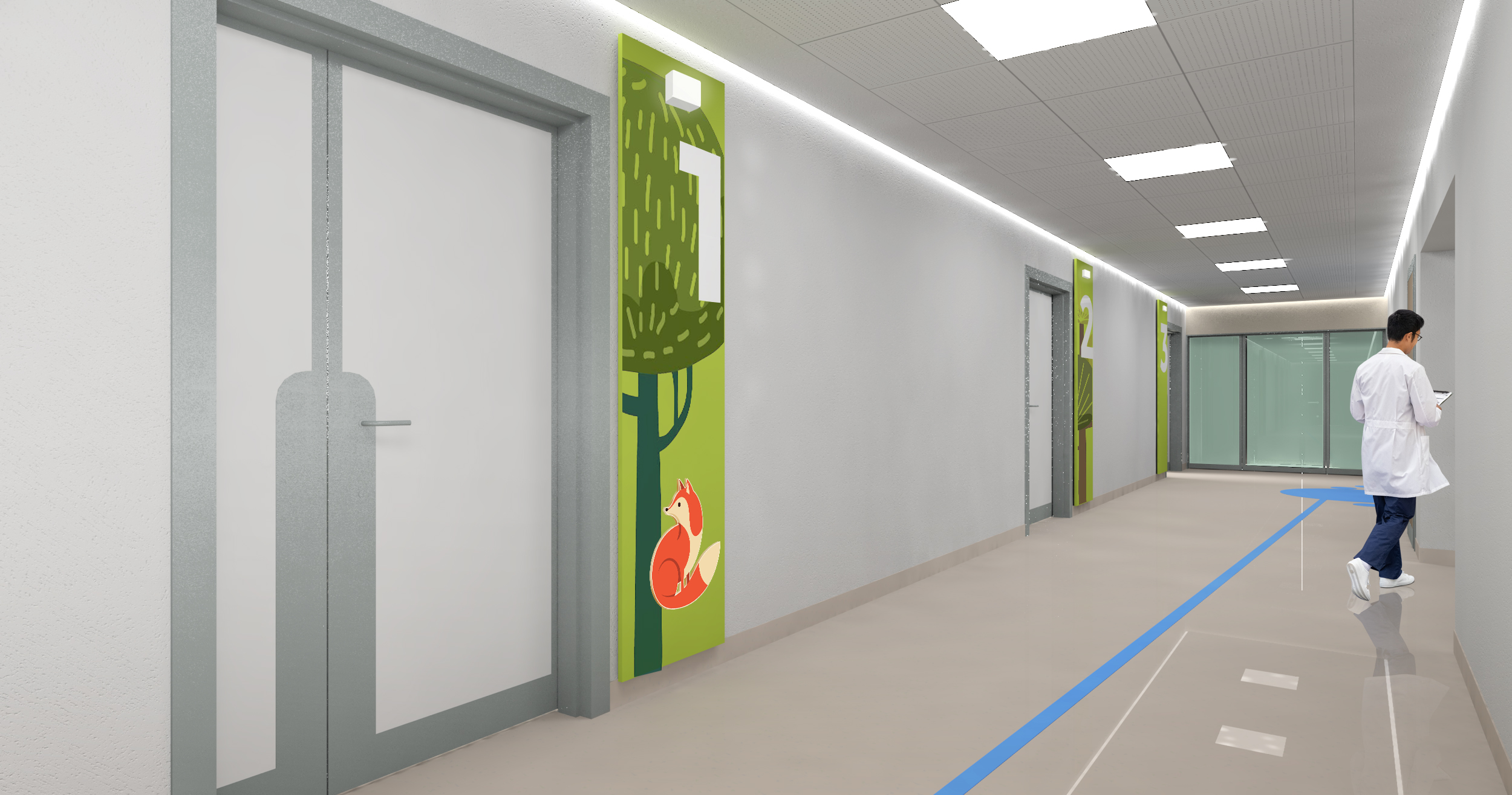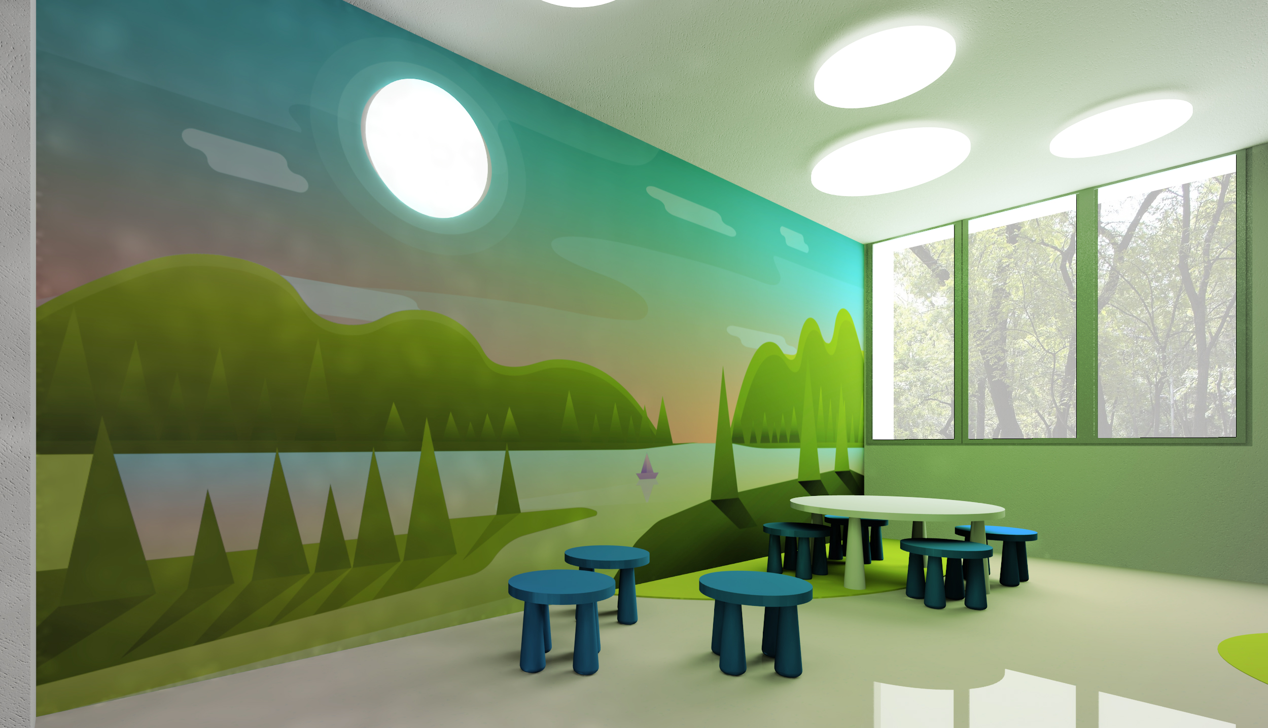 1. L’Umanizzazione degli spazi: Si interviene sulla struttura fisica per superare l’attuale stato di ambienti datati e poco stimolanti. Attraverso trasformazioni cromatiche, nuovi arredi e "animali-guida" magnetici, le camere e i corridoi perdono la loro freddezza istituzionale. Cuore di questa fase è la Sala Multifunzionale, uno spazio fluido che grazie a pareti mobili può trasformarsi da area giochi a sala meeting o ambulatorio per colloqui.